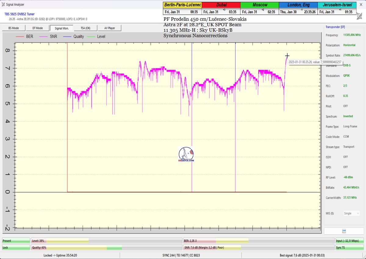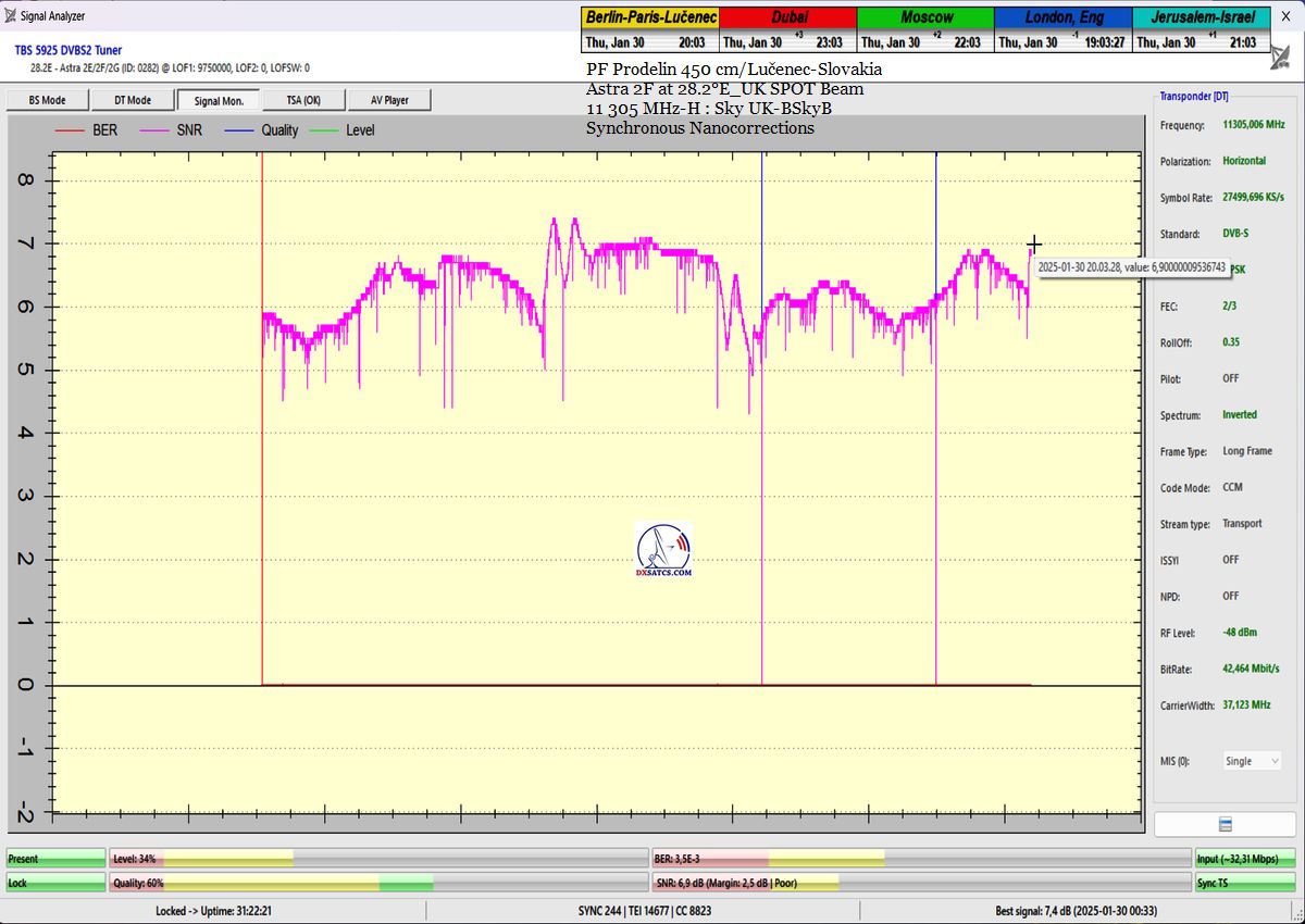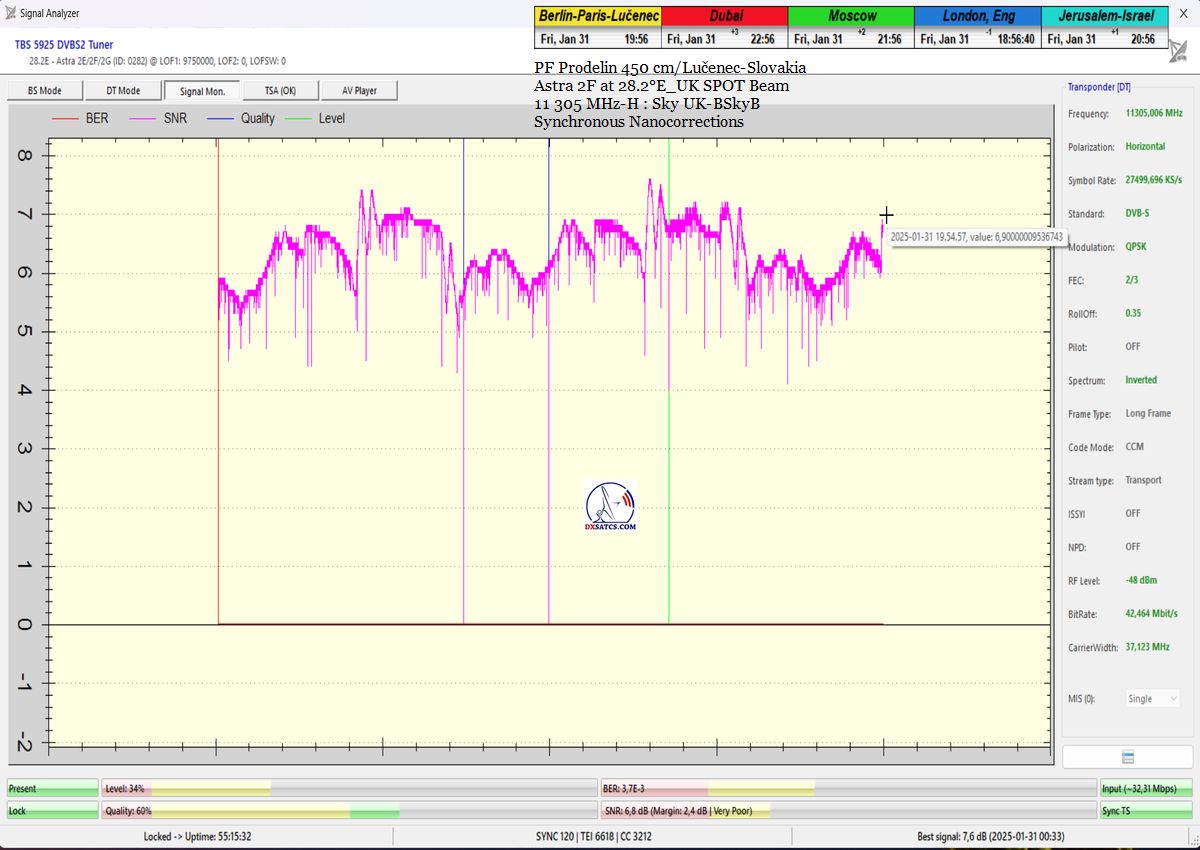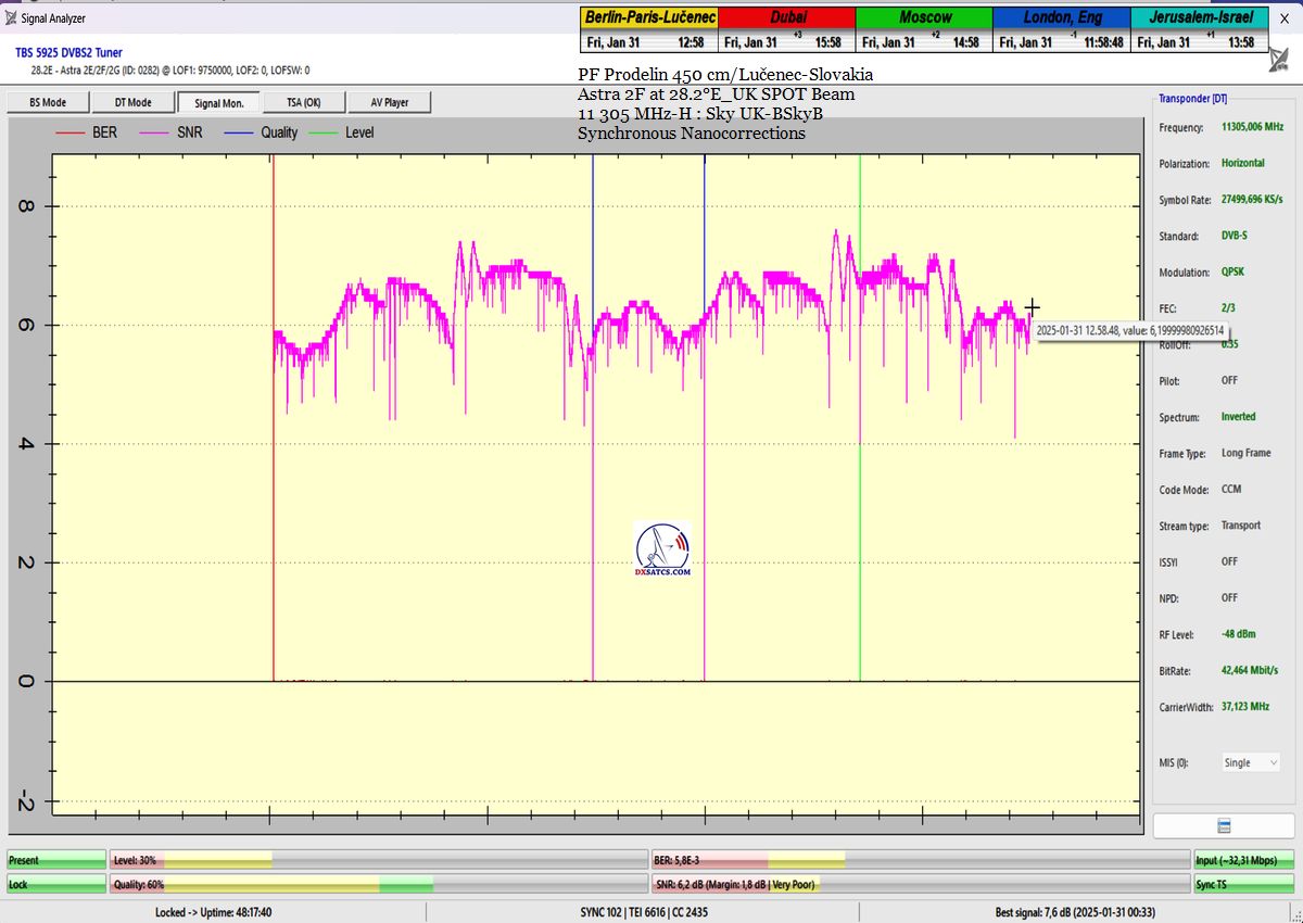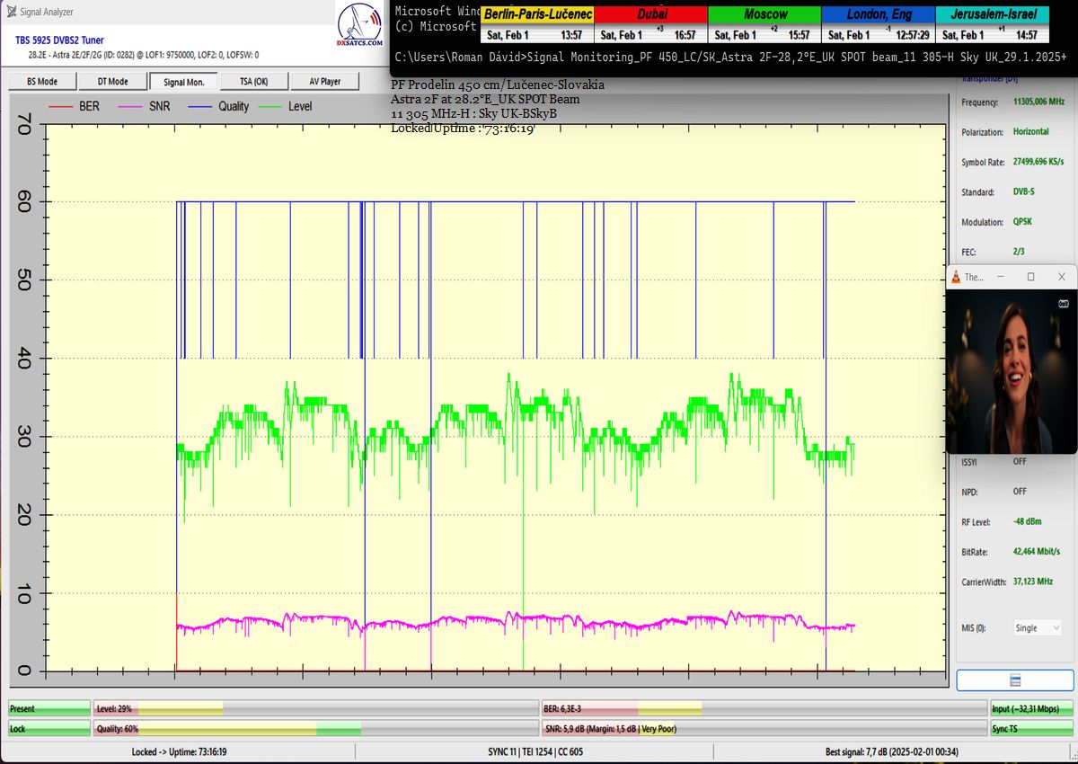 11.2.2025_ASTRA 2F-28,2°E_UK Spot Beam : Successful application of my technological invention "Synchronous Nano-Corrections" on the 11305-H carrier of Sky/BSkyB,with reception stability verified through signal monitoring over a total duration of 100+hours