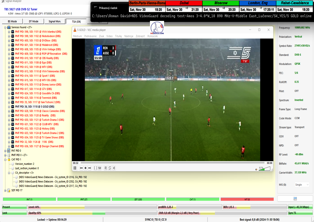 ►5x YES Israel & NDS Videoguard decoding test_30.11.2024_Lučenec/Slovakia by Roman Dávid : click and watch + METV Cyprus (13.6.2024)