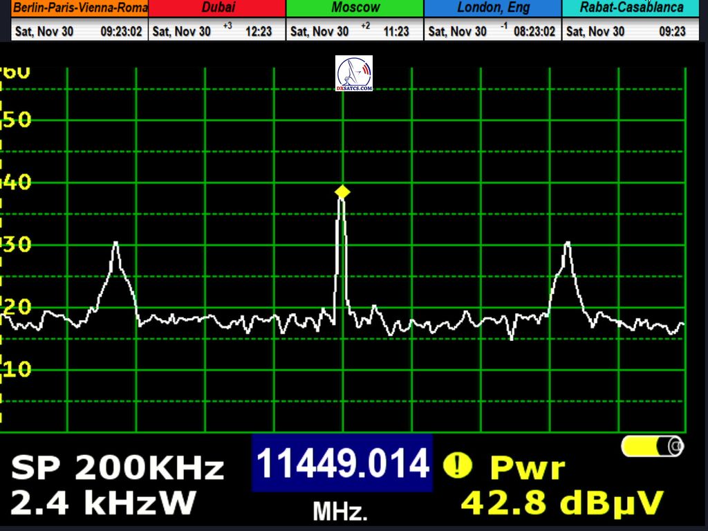 through signal monitoring at the now reference frequency f₀ = 10 890 MHz from the Amos 3 satellite.