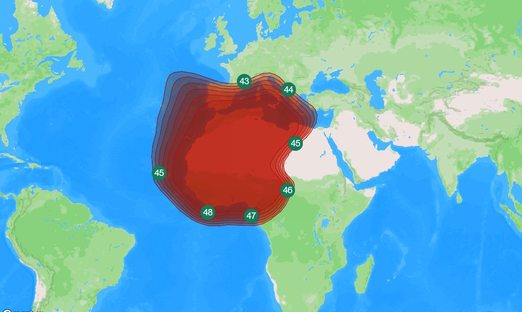 der geografische Punkt des Satellitenempfangs ist nicht auf der Karte verzeichnet