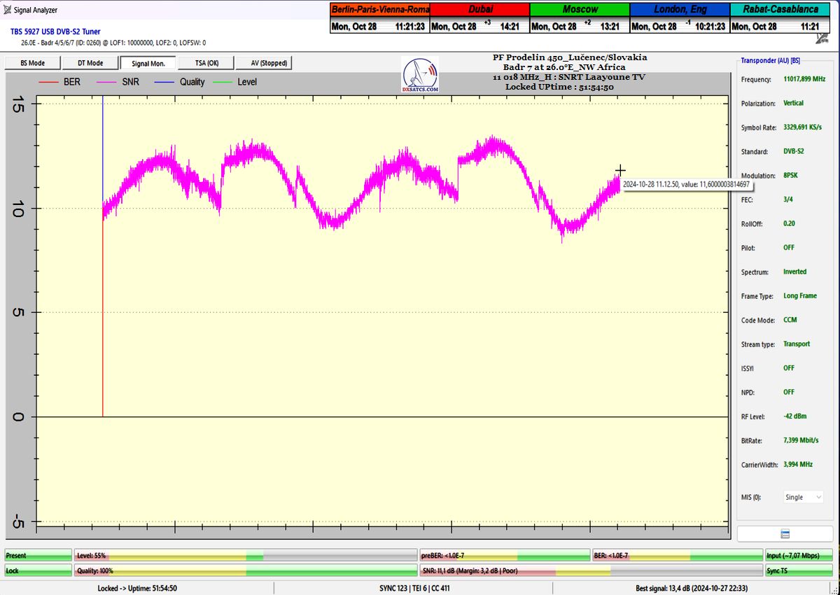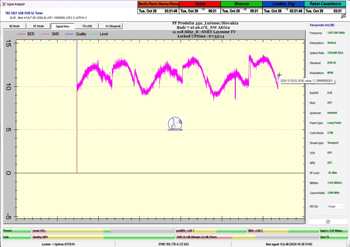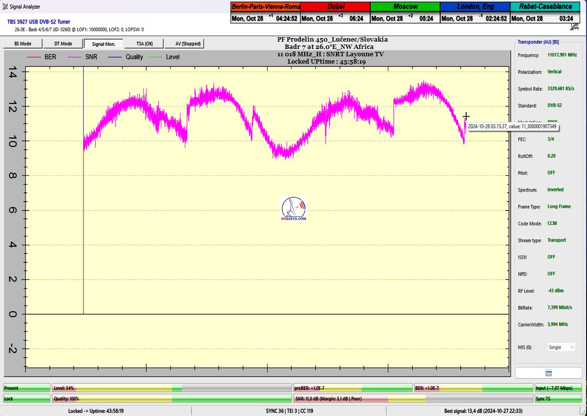 6-11-2024_BADR 7-26°E_NW Africa :The technological invention by Roman Dávid, titled "Synchronous Nanocorrections," is undoubtedly a GAME CHANGER in the field of sat. reception. Today, I can demonstrate the significant benefit of this technology_+3,6 dB