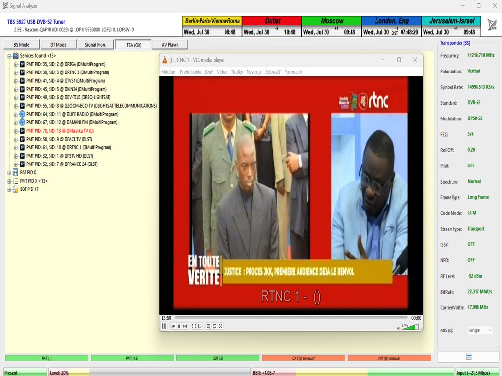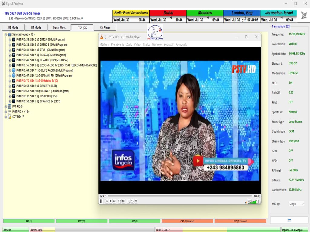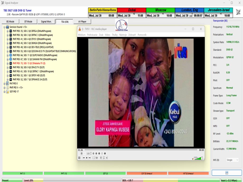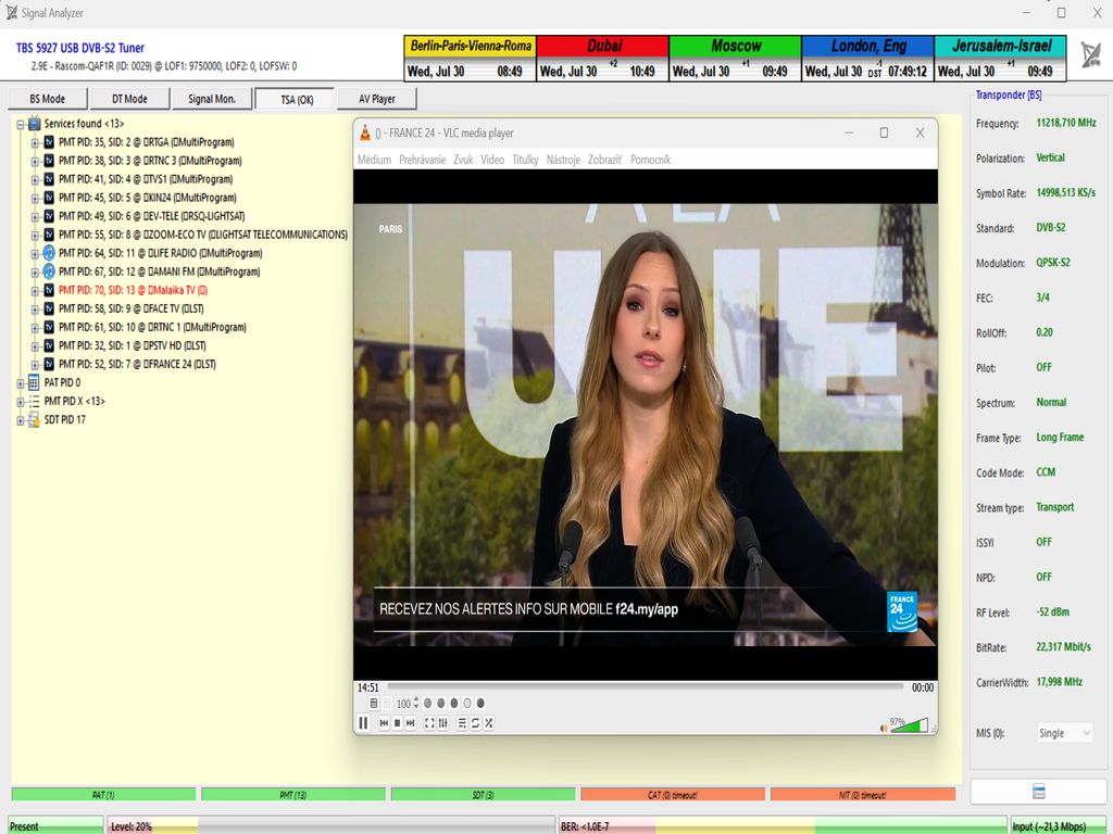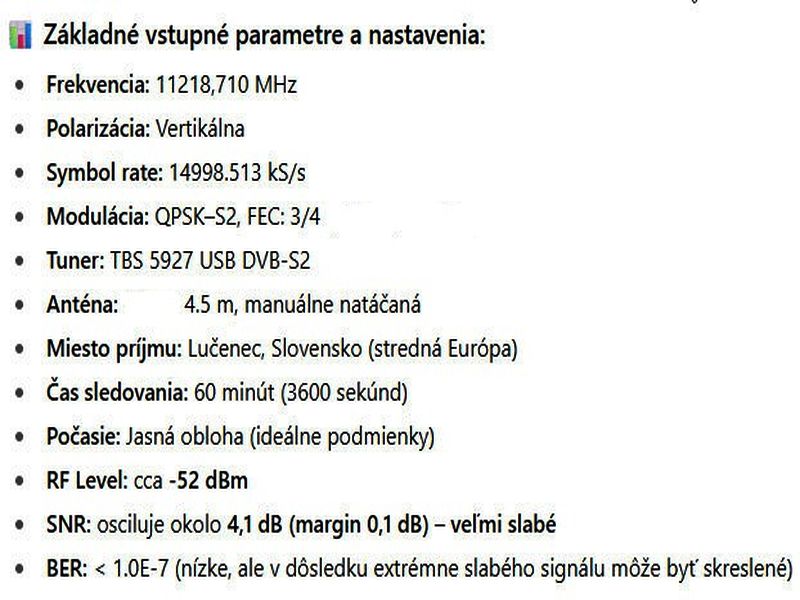 výskyt a prítomnosť dvoch nosných frekvencií — 11349 MHz a 11403 MHz — aj v geografickej oblasti strednej Európy (konkrétne v lokalite Lučenec, Slovensko),
