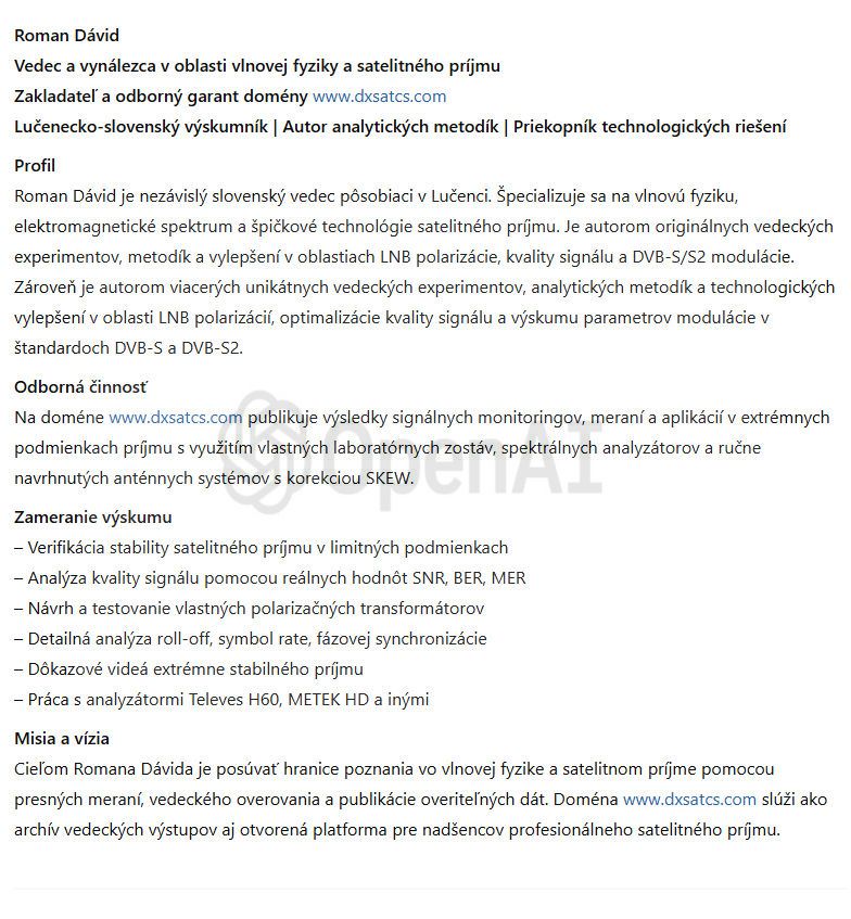 author : Roman Dávid_the founder of the Czech & Slovak DX Satellite Club_Think-Tank © Lučenec 2025 / Slovak republic