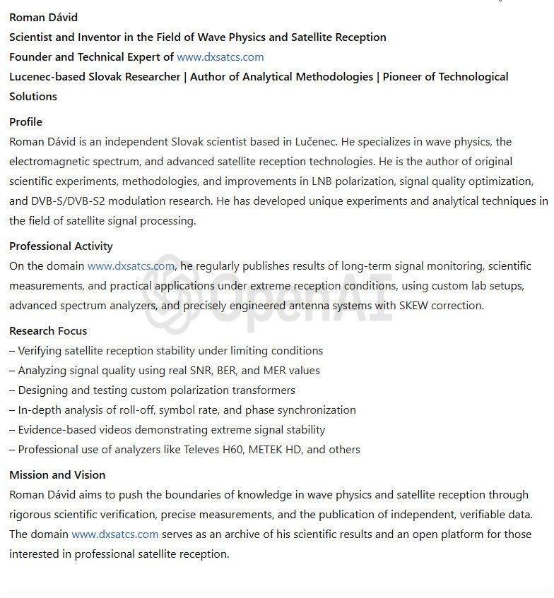 that come exclusively from scientific research conducted by Roman Dávid - the author and the owner of www.dxsatcs.com. All the information found on