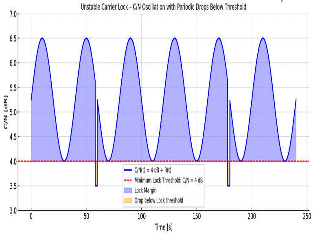 ►Red dashed line: minimum Lock threshold (C/N = 4 dB).