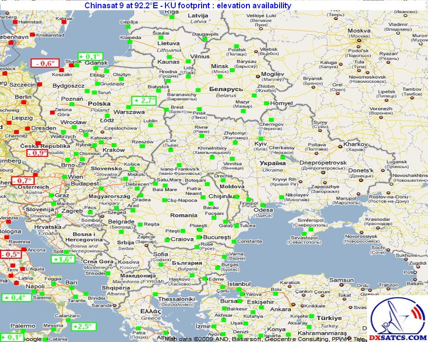 Satellite Chinasat 9 - Zhongxing-9 - ZX-9 at 92.2°E : geographical location of measurement