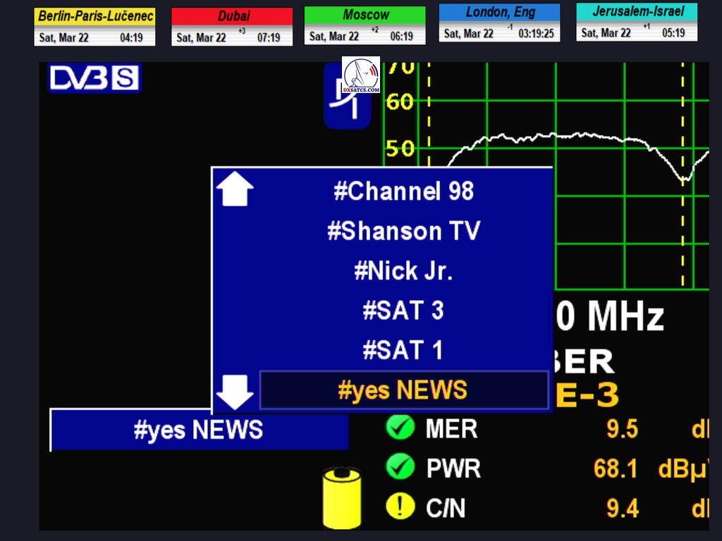 MER=10,3 dB (signálna rezerva 4,3 dB) -YES Satellite service- MER=10,5 dB _ (signálna rezerva 4,5 dB)