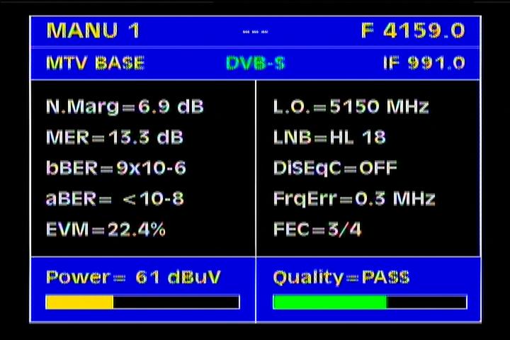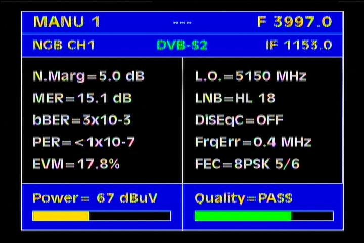 over a period of only 3 second, I identified according to the FEC protocol as a standard DVB-S2 level of gain in the range from