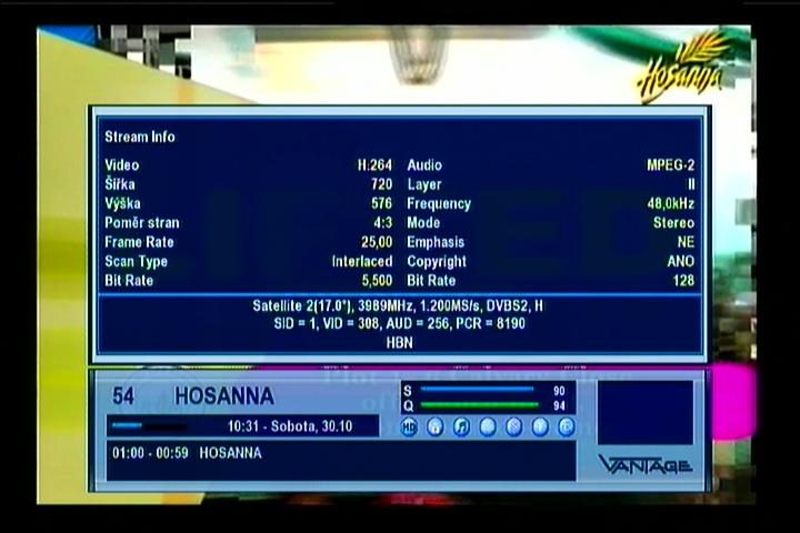 Amos 5i at 17.0°E - pan african footprint : 3 991 H DVB-S2/8PSK Hosana TV