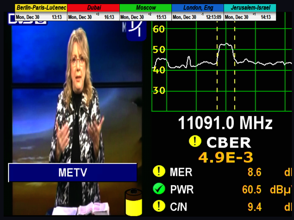 ►Analýza spektra a kvality na f=11 091 MHz_H v jednotke MER dokázavá vo video ukážke na výstupe z kalibrovaného analyzátora METEK HD :