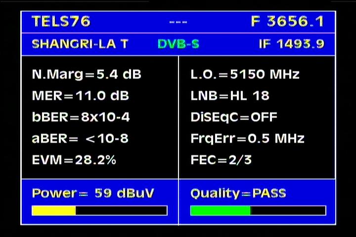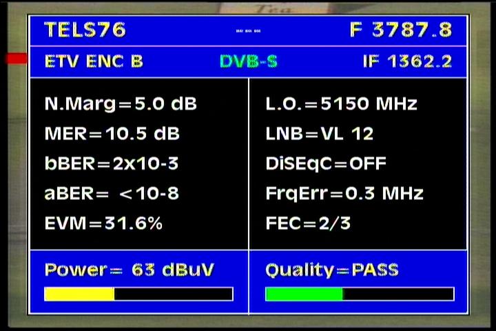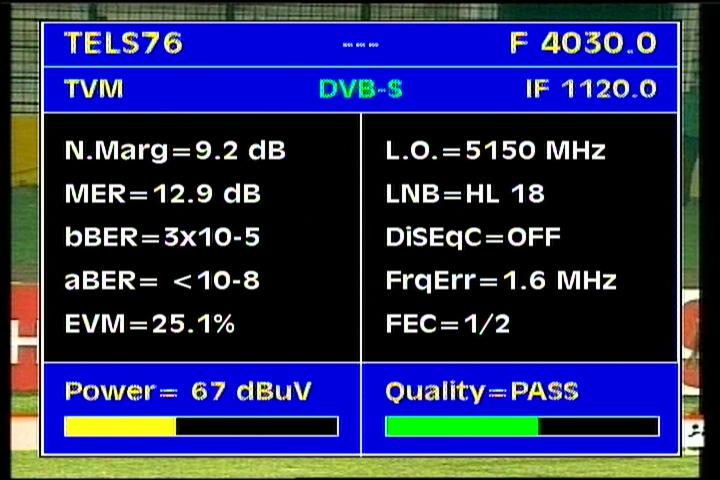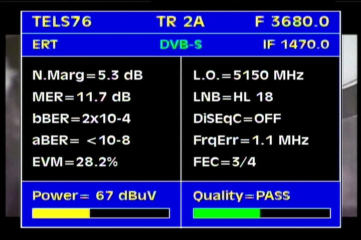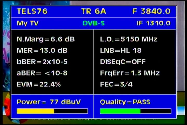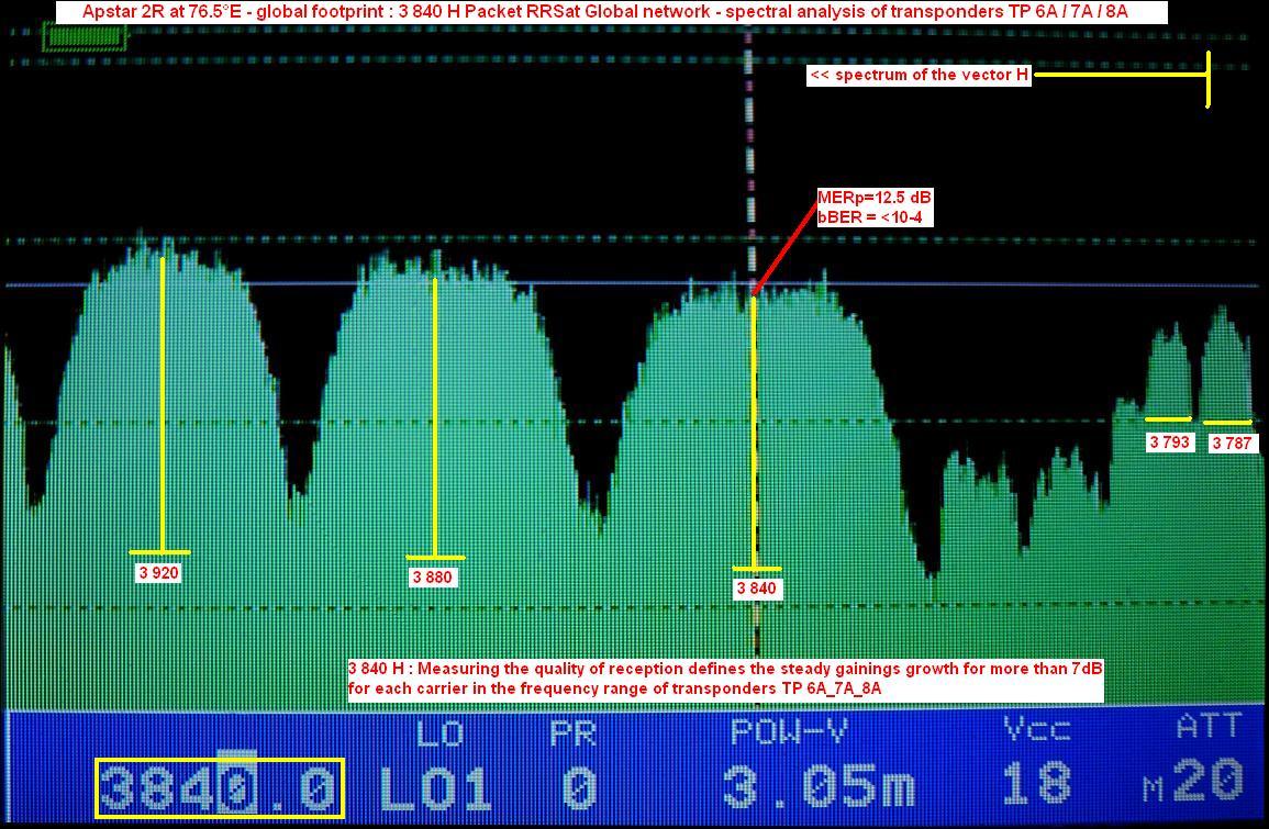 - Apstar 2R at 76.5°E : quality measurement results in the reception spectrum of H and V wave vector -