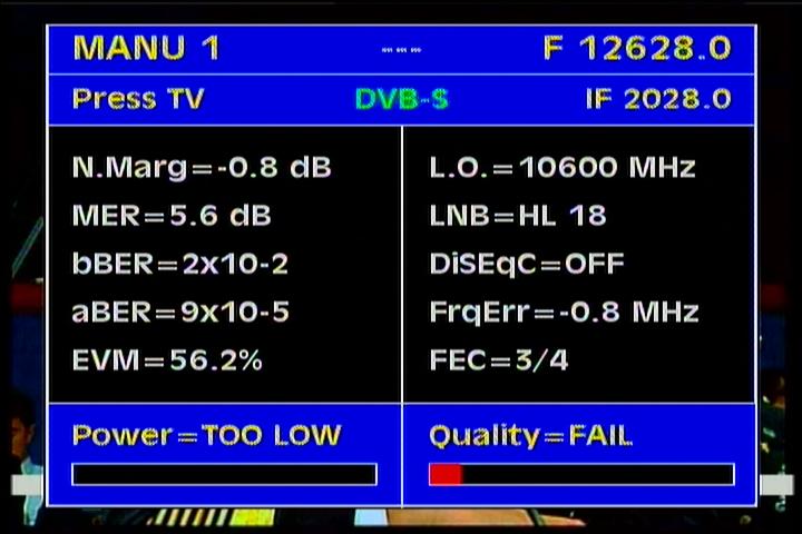 Arabsat 2B at 30.5°E - KU footprint : 12 628 V Press TV Iran