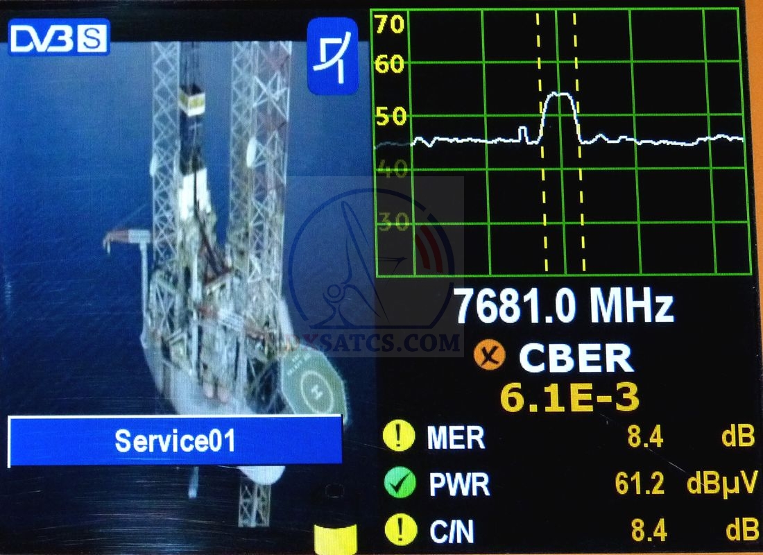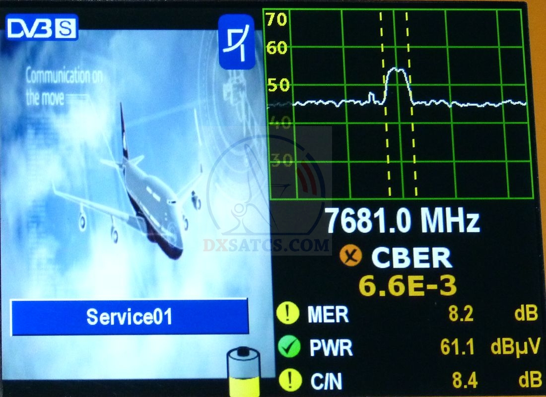 na f=7 681 MHz prvé FTA vysielanie v pásme X,ktorým je promo vysielanie operátora SES Astra vo formáte DVB-S/H-222 .