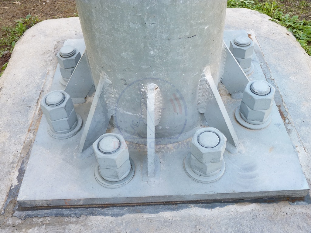 ktoré sú prizvárané o prvú platňu z plochej ocele s rozmerom 60x60x3 cm v hĺbke 60 cm pod zemským povrchom.