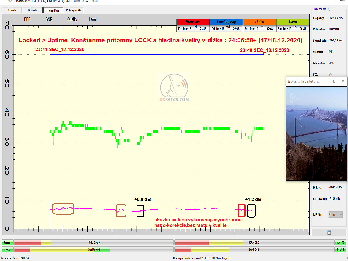 synchrónnych nanokorekcií do RX systému,v praxi príjmu verifikoval signálny model s jedným konštantne prítomným LOCKOM v dĺžke viac ako 24 hodín