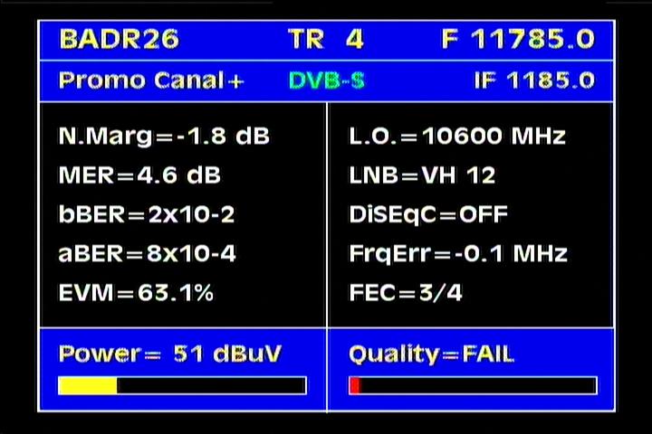 Badr 6 at 26.0°E : percent Q & stream data