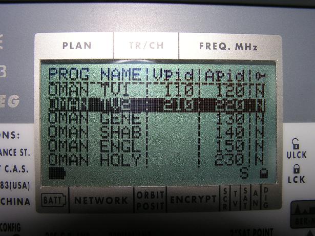 ---SR--- | ---FEC--- | ---Footprint--- | ---Antenna--- | ---Video/Encryption--- |