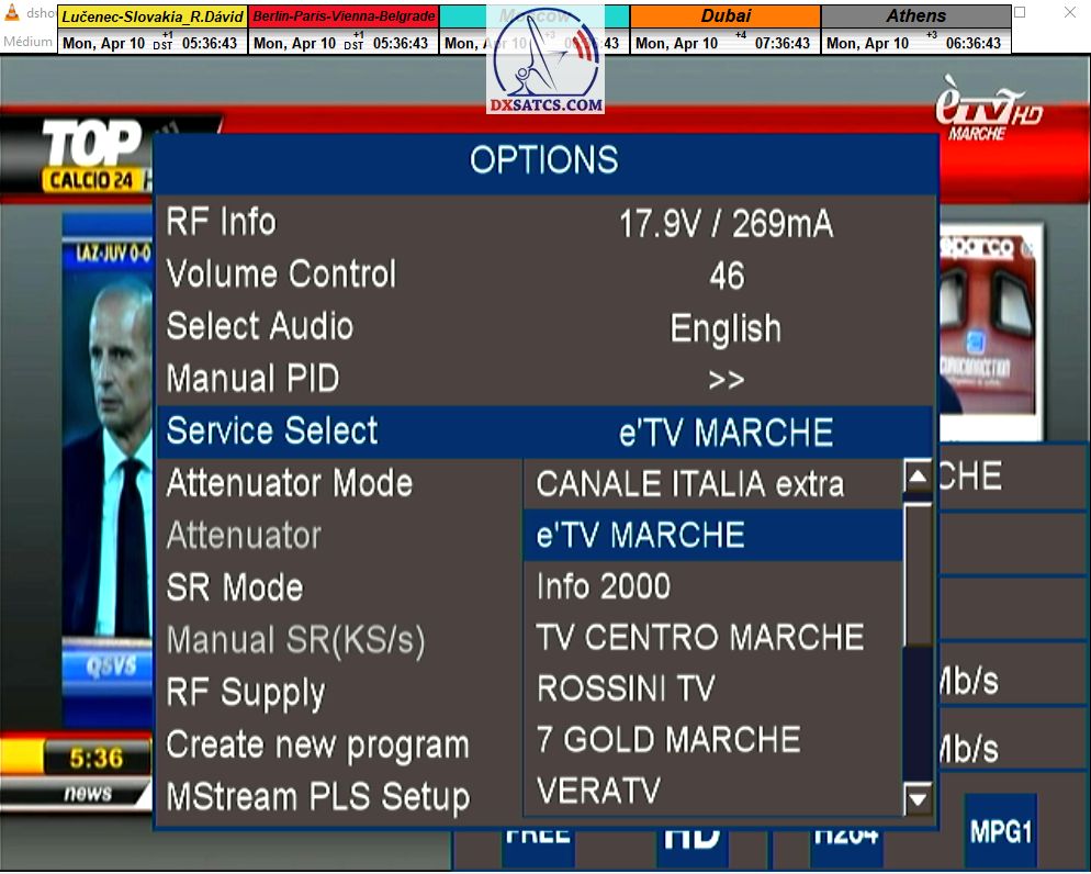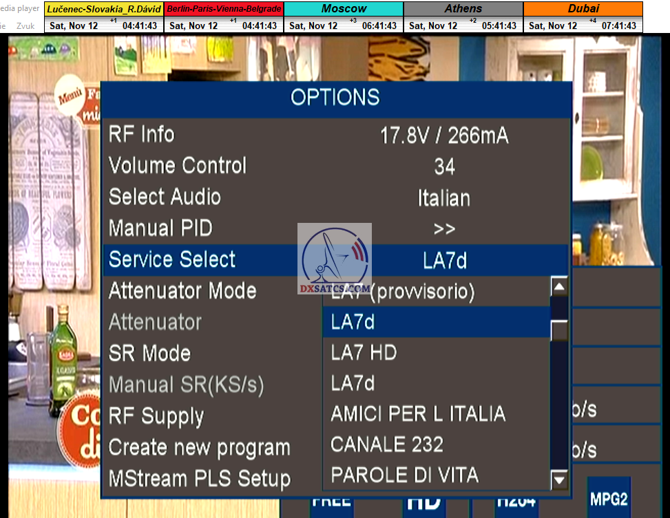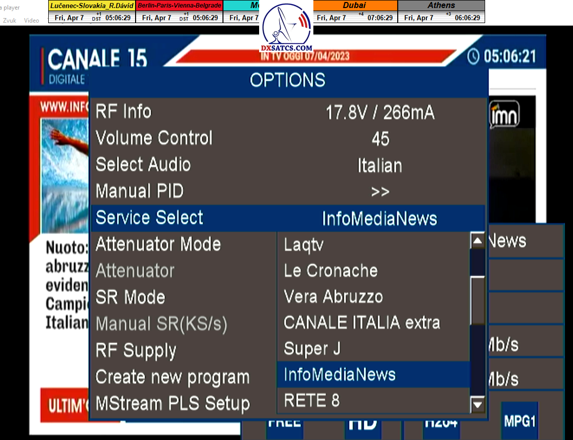 ►zámerne beží na pozadí meraní vysielanie TGCOM 24+R101 s kódom o aktuálnom čase,za účelom vylúčenia podvodov a verifikáciu správnosti času