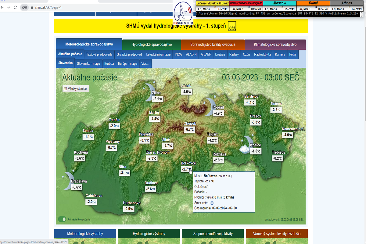 Začiatok signálneho monitoringu dňa 2.3.2023 o 17:15 SEČ  a aktuálna poveternostná situácia