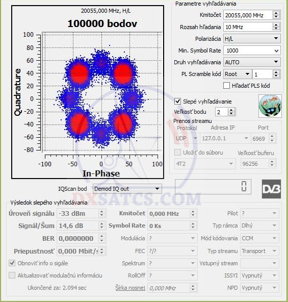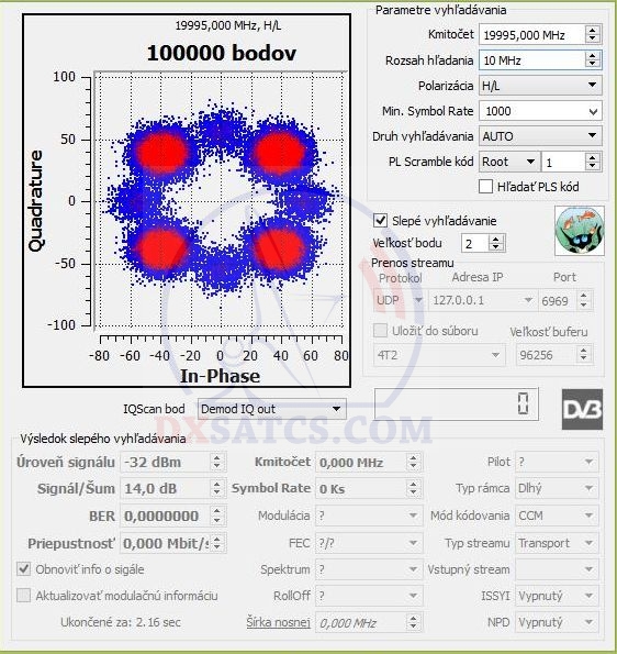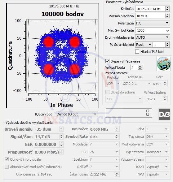 LH a RHCP,v ktorých identifikoval 16 paketov v rozsahu spektra od 19,7 do 20,2 GHz + Beacon/Maják na f=19 680 H .