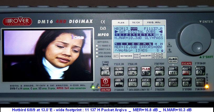 Update-Hot bird 6/8/9 at 13.00°E-wide footprint: spectrum analysis and measurement of quality of income