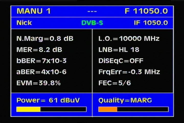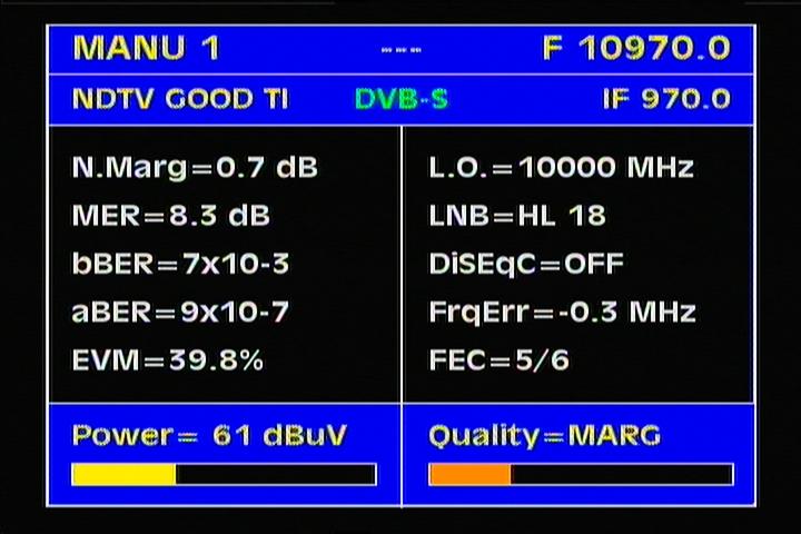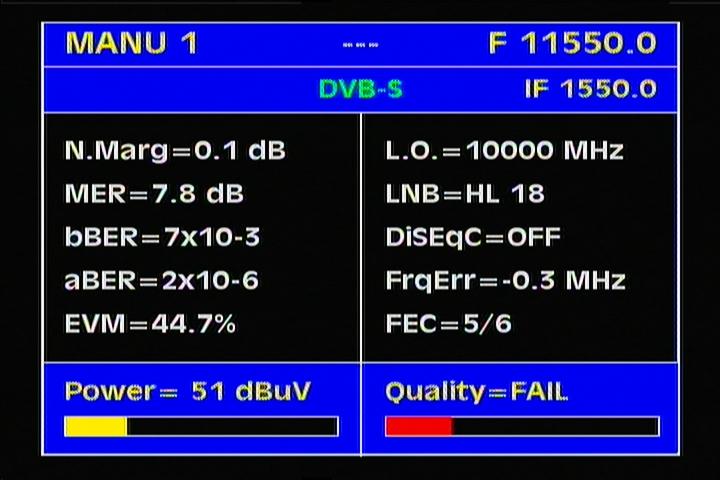 MER=0.5 dB and in field measurements in the length of the 7 hours I did not identify even one pixelation short-falls