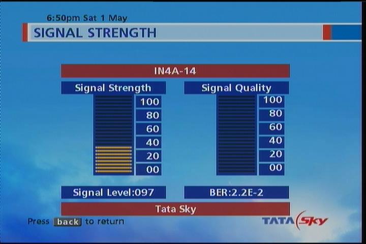 Insat 4A at 83.0°E-footprint in KU band-Packet TATA Sky: relative quality
