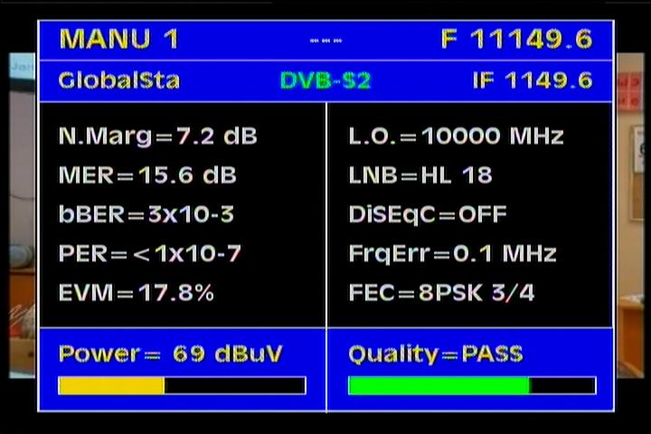 spectrum of TP64 transponder which is directly linked to high levels of gain margin in the range of MER=10-12 dB,depending