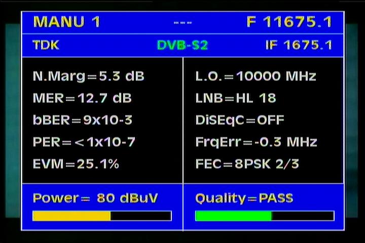 IS 904 at 60.0°E - SPOT 1 Russia : 11 675 V DVB-S2/FTA Rossiya 24 - qualitative peak MER=12.7 dB