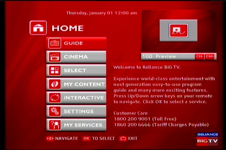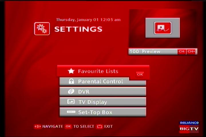 Reliance Digital TV:HD/DVR receiver DVR H 101 with the 160 GB HDD_the receiver's menu