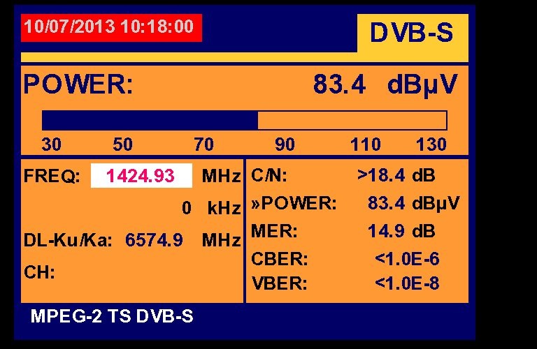 satellite Insat 4A with the cassegrain reflector Vertex RSI 9.0m+spectral analyzer Rohde & Schwarz ETL + Tandberg receiver TT1260