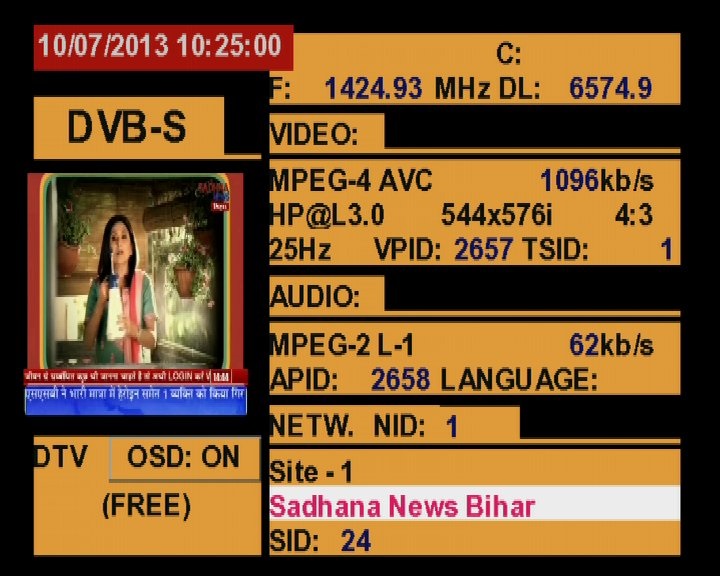 3 725 @ 1 424.93 MHz : 83°E NSTPL India / Site-1