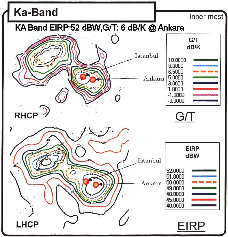 Turksat 4A KA band footprint                               4T2 G/T and EIRP                measurement: N48°19719' , E19°40148'