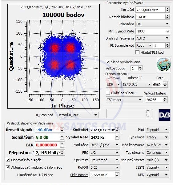a ľavotočivého vektora vlnenia identifikoval a zadefinoval parametre prenosu pre dva streami v štandarde DVB-S2,
