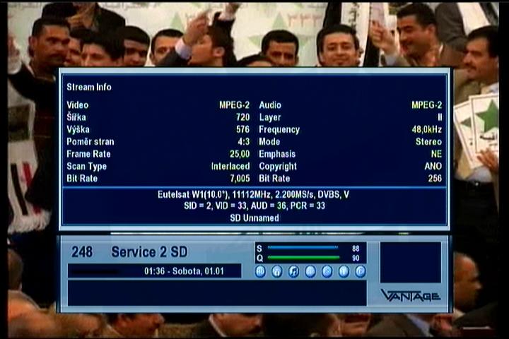 Eutelsat W2A at 10.0°E - wide footprint : feeds _ 12 730 V APTN Lima / Tandberg